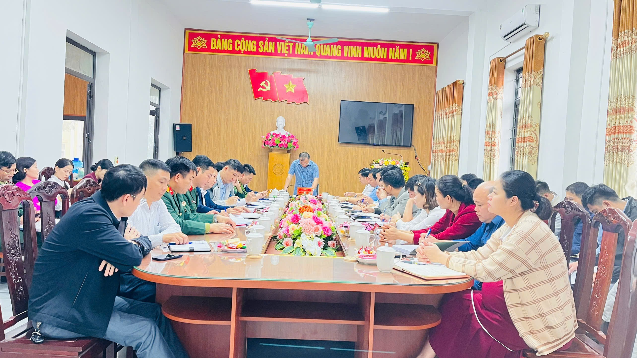 Hội nghị do đồng chí Hoàng Văn Chung – Phó Bí thư Đảng ủy, Chủ tịch UBND xã chủ trì; tham dự có các đồng chí Phó Chủ tịch UBND xã cùng lãnh đạo các phòng, ban chuyên môn.